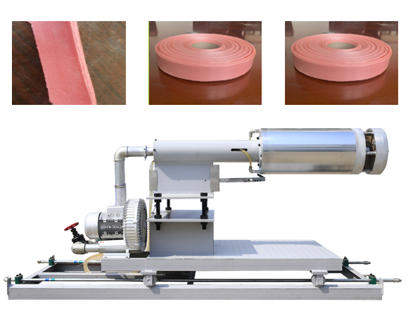 新技术结鞭膜机的生产工艺流程。将配好的LDPE等原料经混合后加入挤出机料斗,经螺杆输送、剪切以及加热而熔融,由计量泵在机筒中部依次加入单甘酯和发泡剂,然后熔料经环形口模挤出。为了获得光滑柔软的片材表面,必须把出口模前的料温降到95℃左右,以提高熔料强度,避免发泡气体冲破坯料表层。刚出口模的坯料为筒状,经剖分后收卷即可。